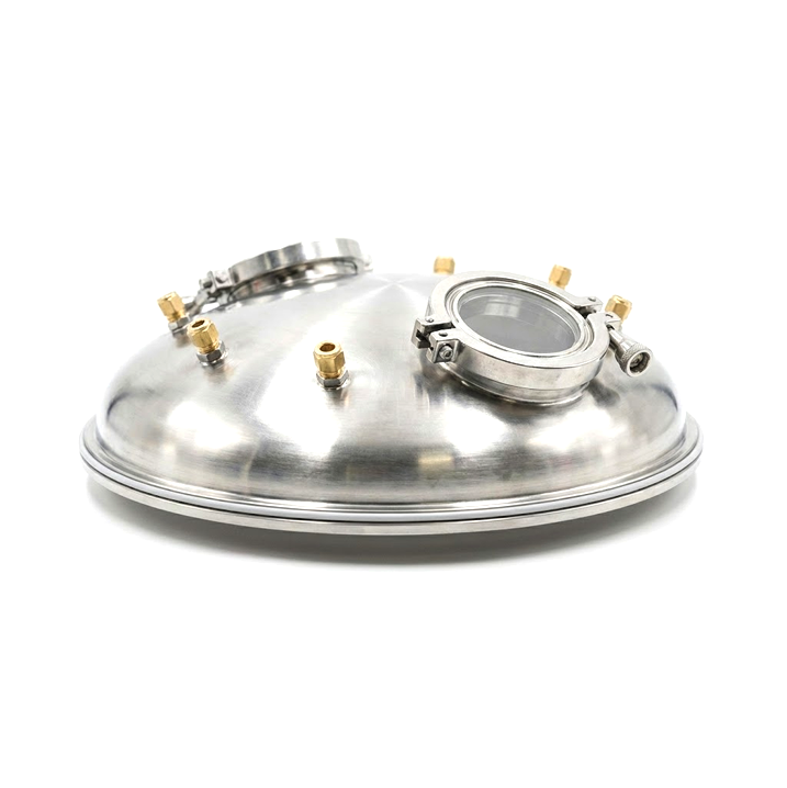 10" hemispherical standard lid with multiple 1/2" compression ports and two 2" tri-clamp sight glasses for enhanced access and process visibility. Precision-machined stainless steel construction delivers reliable, leak-resistant performance in extraction, lab, and industrial applications. Durable design ensures long-lasting service in demanding environments.